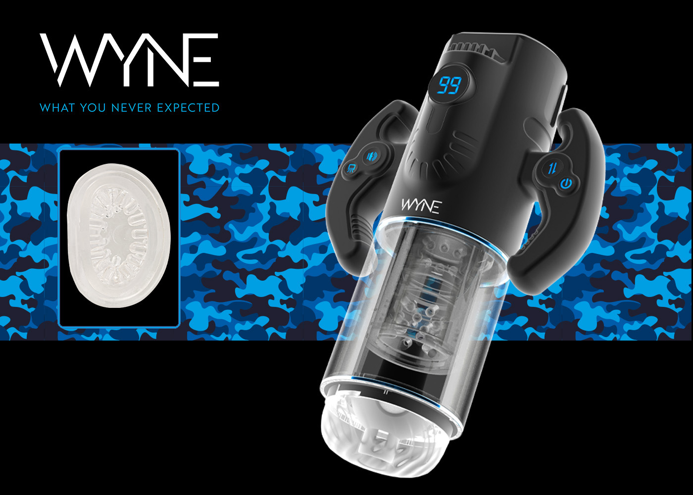 WYNE ist die Premium-Marke hochwertiger Masturbatoren für anspruchsvolle Männer und steht für „What You Never Expected“ – und das nicht ohne Grund: Die hochwertigen Masturbatoren von WYNE überzeugen mit unterschiedlichsten Vibrations-, Saug-, Stoß- und Rotations-Funktionen bis hin zum Stöhnen. In ihrem Inneren sorgen seidig-softe Sleeves, die mit unzähligen weichen Massagenoppen und -rillen strukturiert sind, für eine intensive Penismassage und ein angenehm realistisches Gefühl beim Masturbieren. Zur einfachen Reinigung sind die Sleeves herausnehmbar. Für eine perfekte Haptik und zur diskreten, staubfreien Aufbewahrung haben die Masturbatoren feste Gehäuse mit Verschlusskappen. Wiederaufladbar sind die Masturbatoren von WYNE mit einem jeweils beiliegenden USB-Ladekabel.